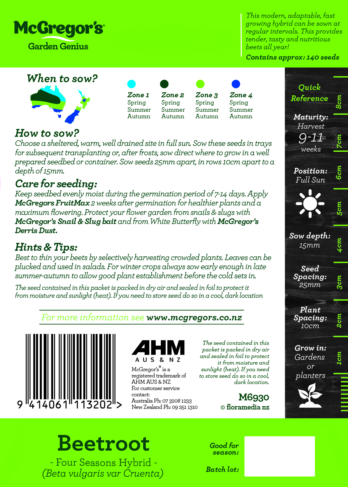 This modern, adaptable, fast growing hybrid can be sown at regular intervals, providing tender, tasty and nutritious beets all year!Where to buy