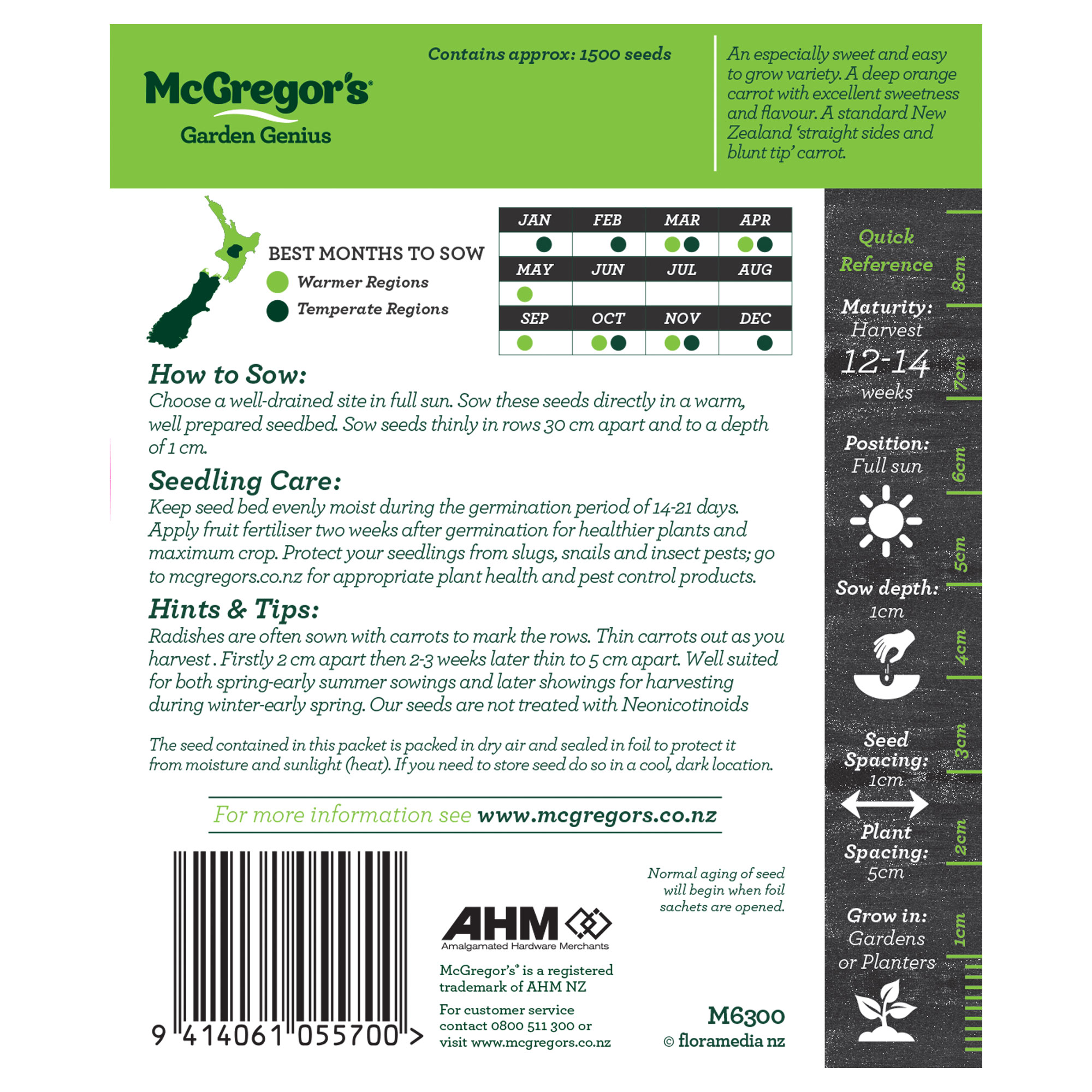 An especially sweet and easy to grow variety. A deep orange carrot with excellent sweetness and flavour. A standard New Zealand 'straight sides and blunt tip' carrot.Where to buy