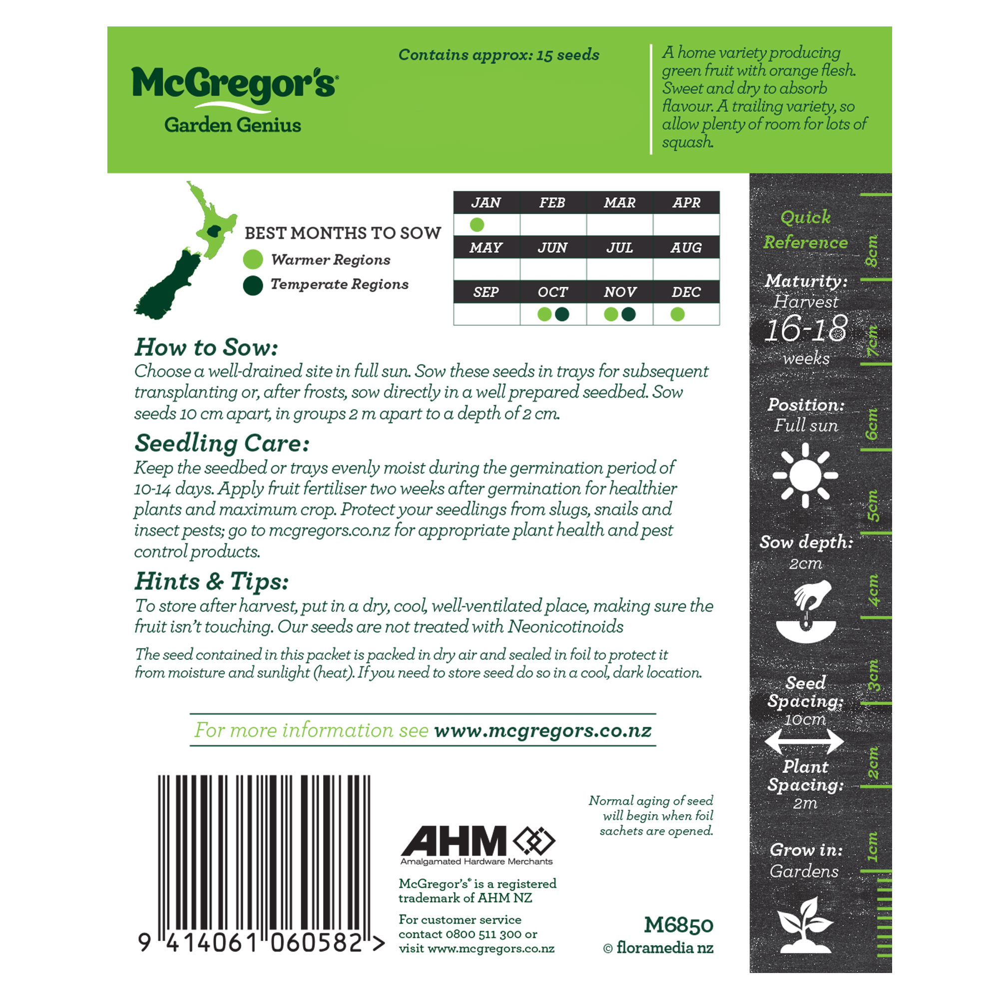 A home variety producing green fruit with orange flesh. Sweet and dry to absorb flavour. A trailing variety, so allow plenty of room for lots of squash.Where to buy