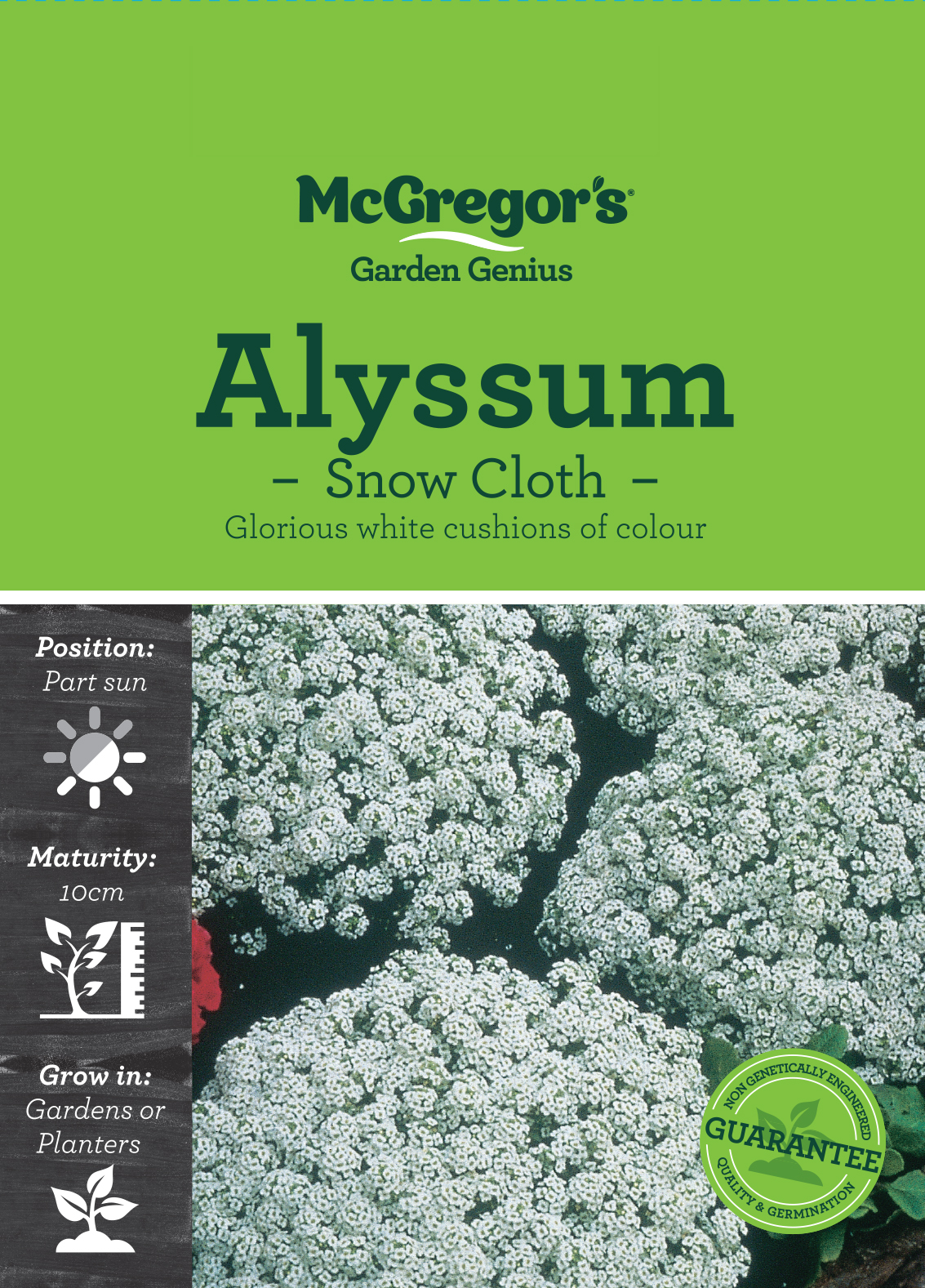 Abundant white blooms which is especially good for edging. Extremely easy to grow. Great for attracting bees and perfect for tidying up difficult areas where other bedding plants may struggle.