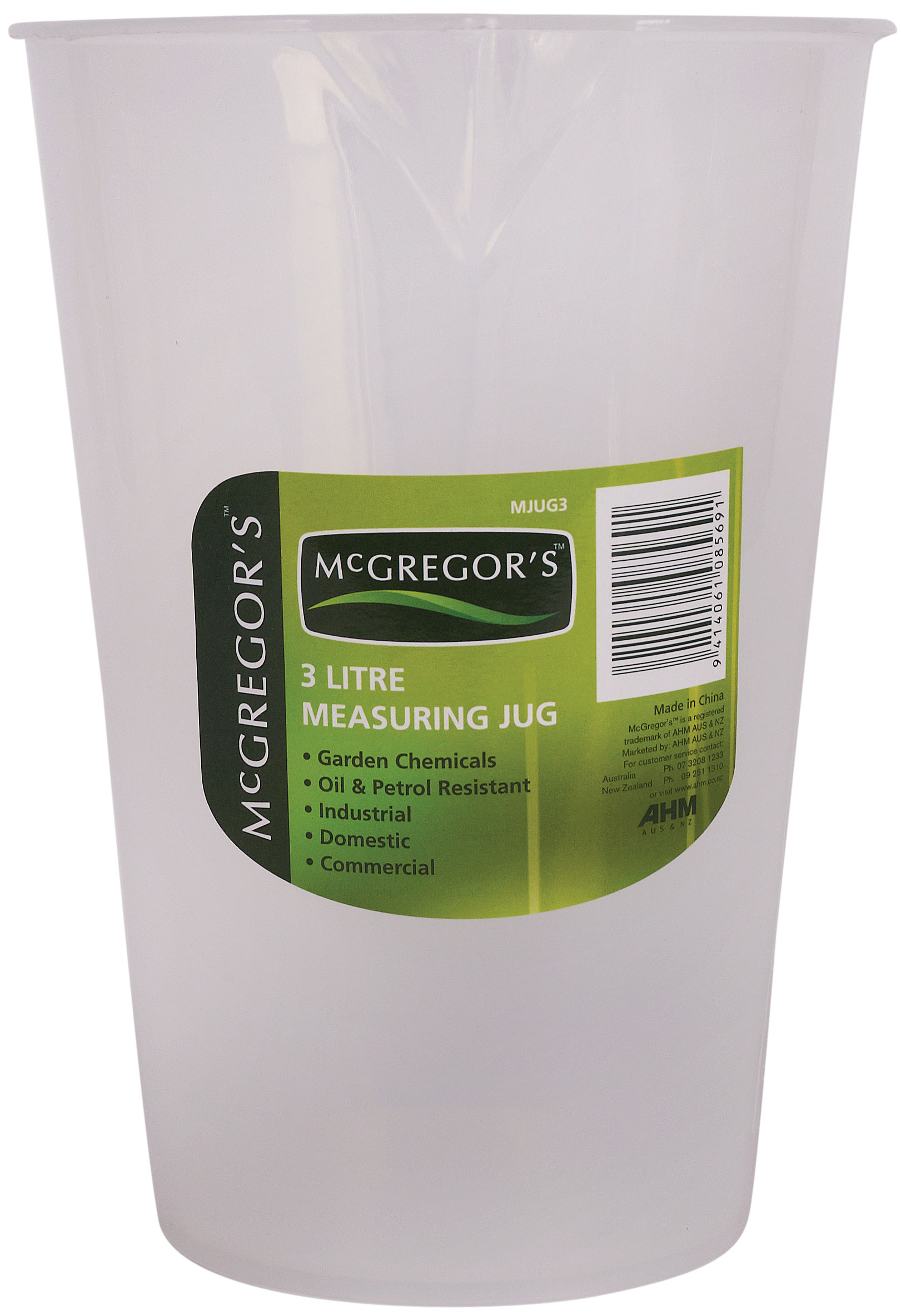 This opaque graduated plastic measuring jug has a 3L capacity, and graduates in 50ml increments. Ideal for garden chemicals.