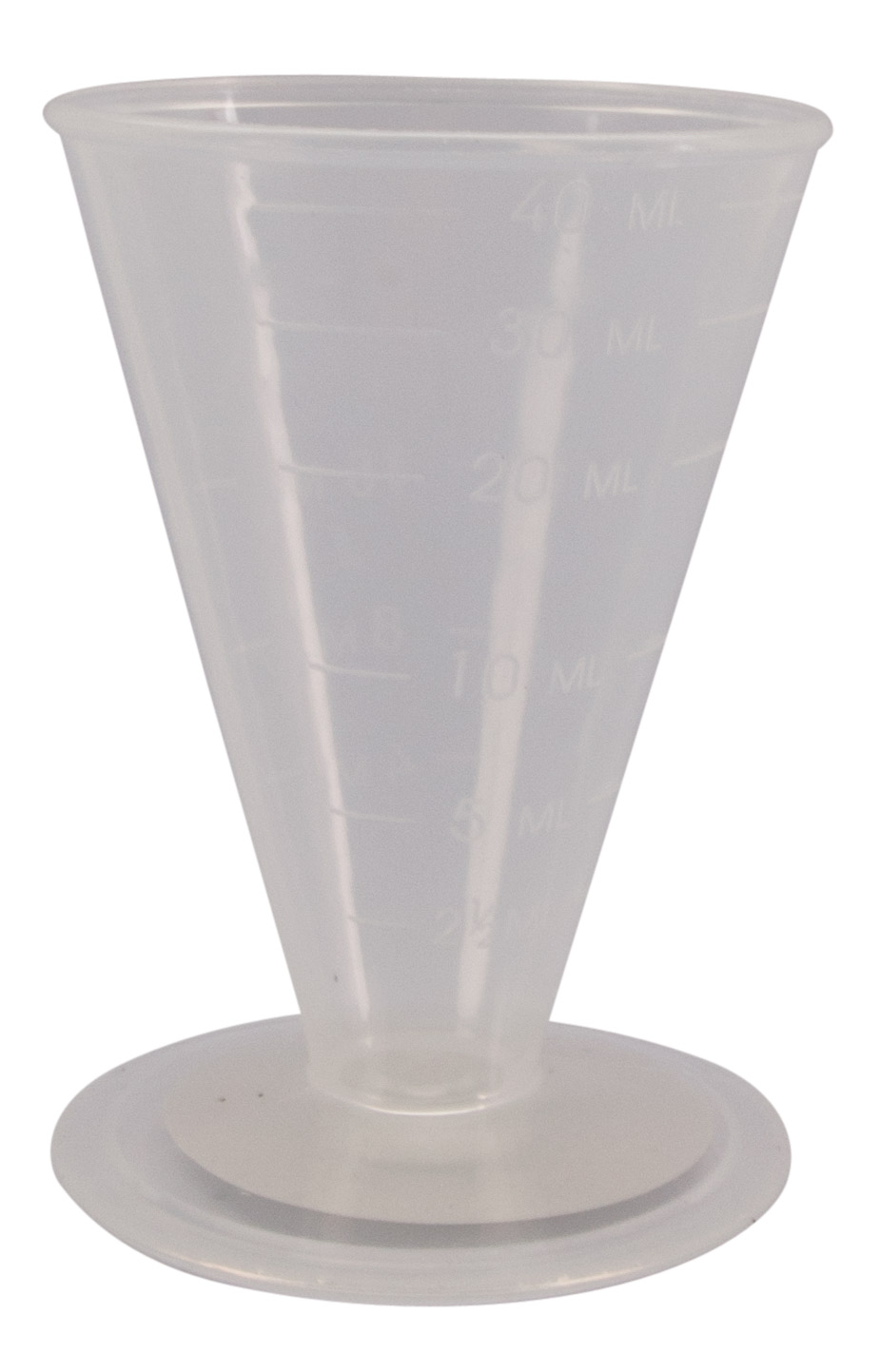 This clear plastic conical measure has a 40ml capacity and features clear graduations for accurate measures.
