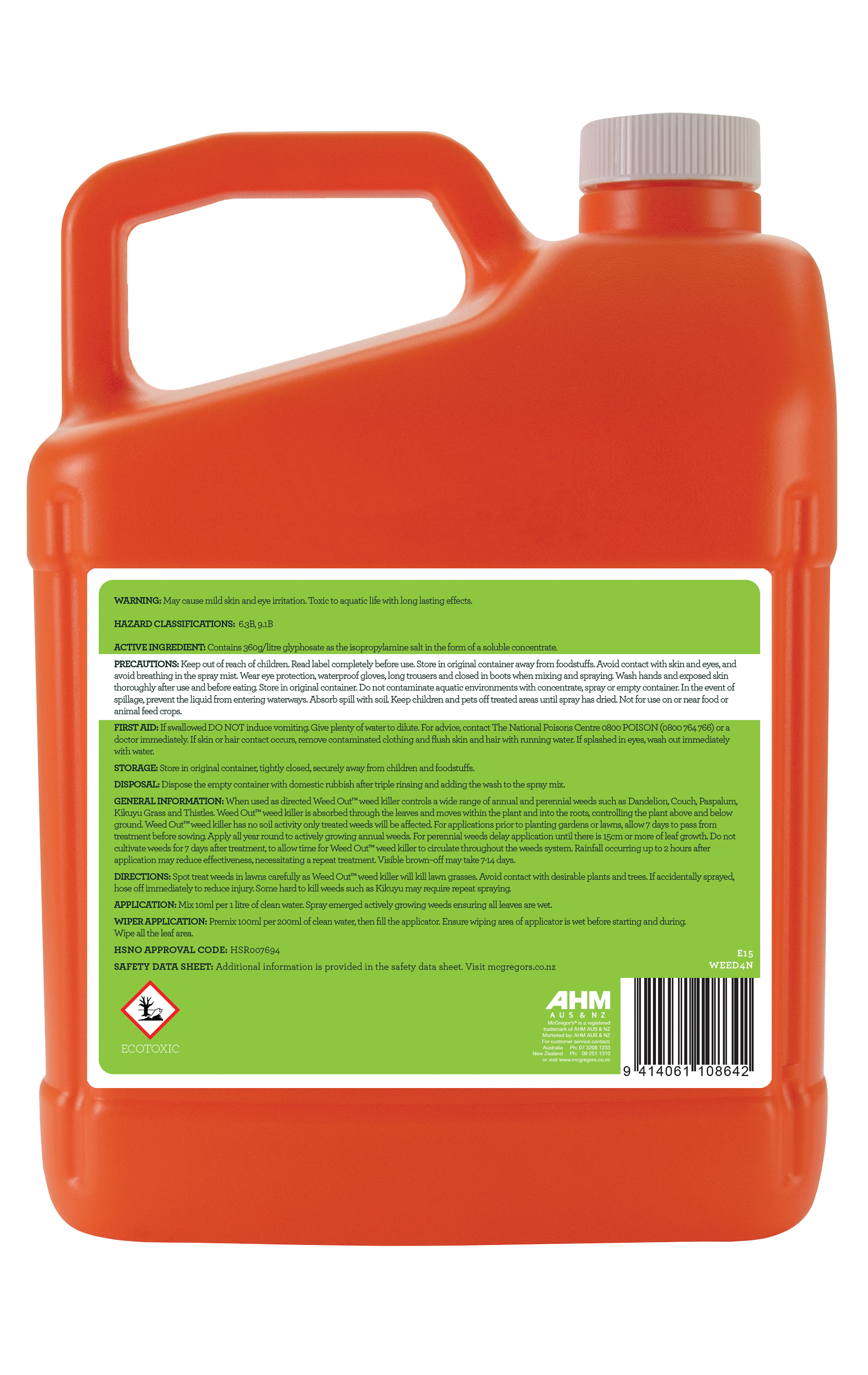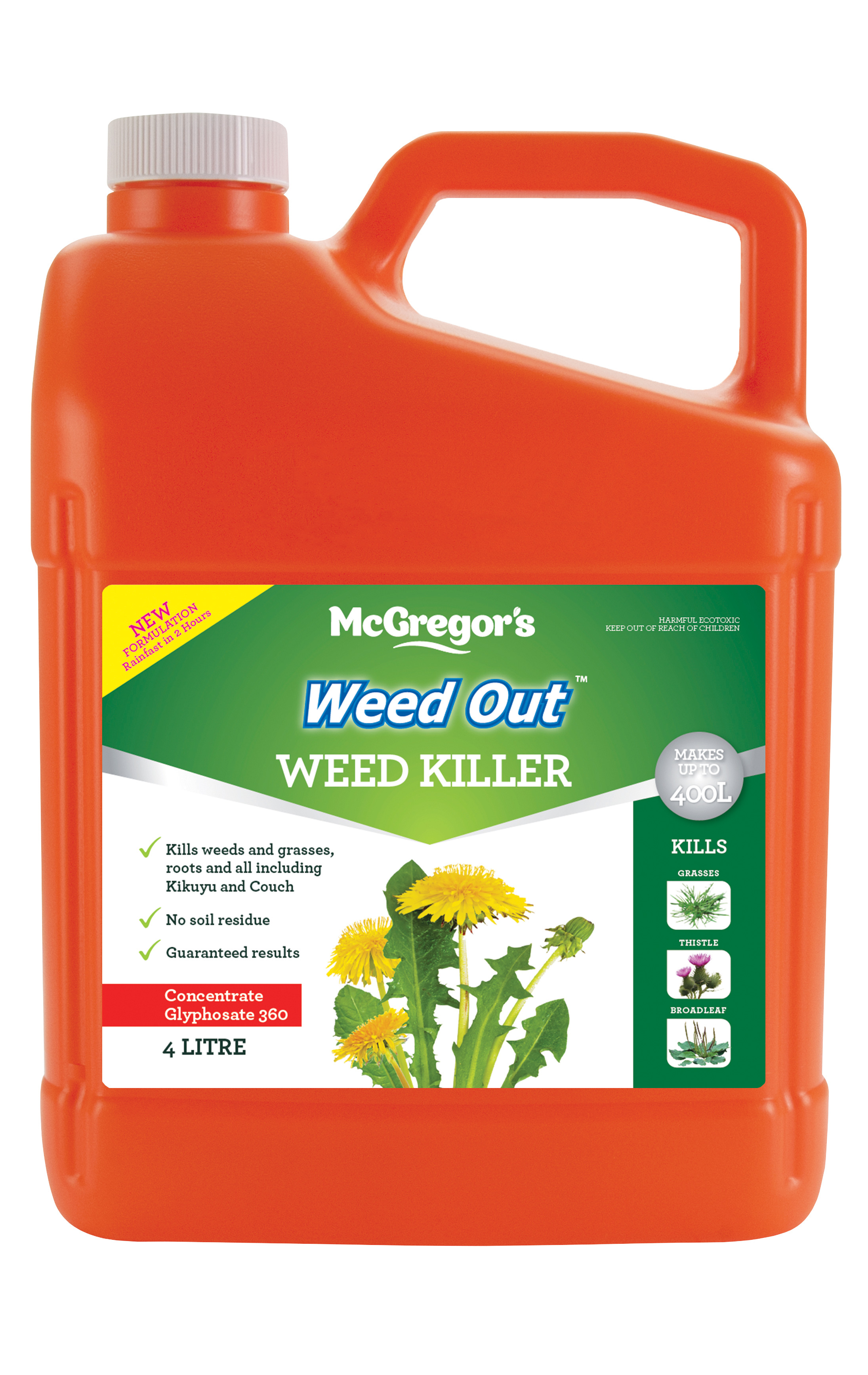 McGregor's Weed Out Weed Killer is a non-selective weed killer used for controlling annual and perennial weeds including Dandelion, Paspalum Broadleaf, Grasses and Thistles.