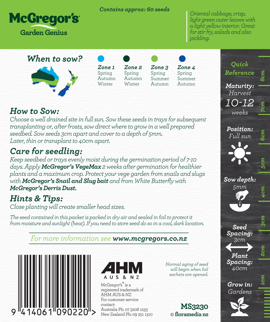 Attractive barrel shaped heads. Oriental cabbage crisp, light green outer leaves with a light yellow interior. Great for stir fry salads and also pickling.