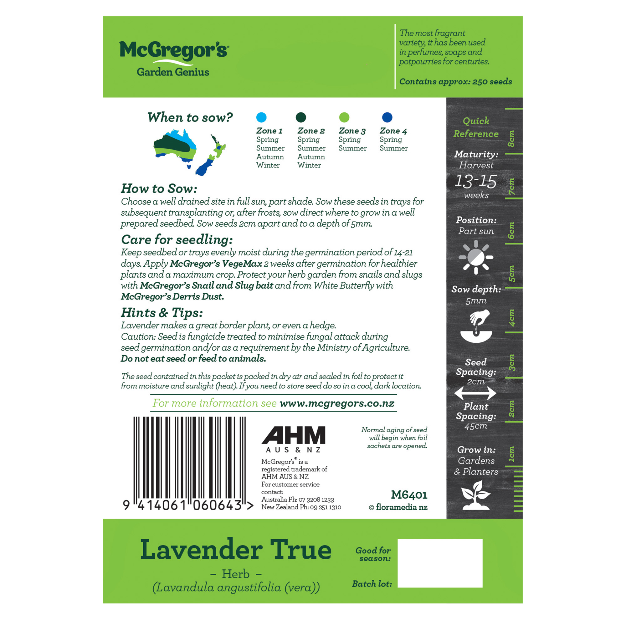 • Seedling Care: Keep seedbed or trays evenly moist during the germination period of 14-21 days. Apply vegetable fertiliser two weeks after germination for healthier plants and maximum growth and blooms. Protect your seedlings from slugs, snails and insect pests; go to mcgregors.co.nz for appropriate plant health and pest control products.