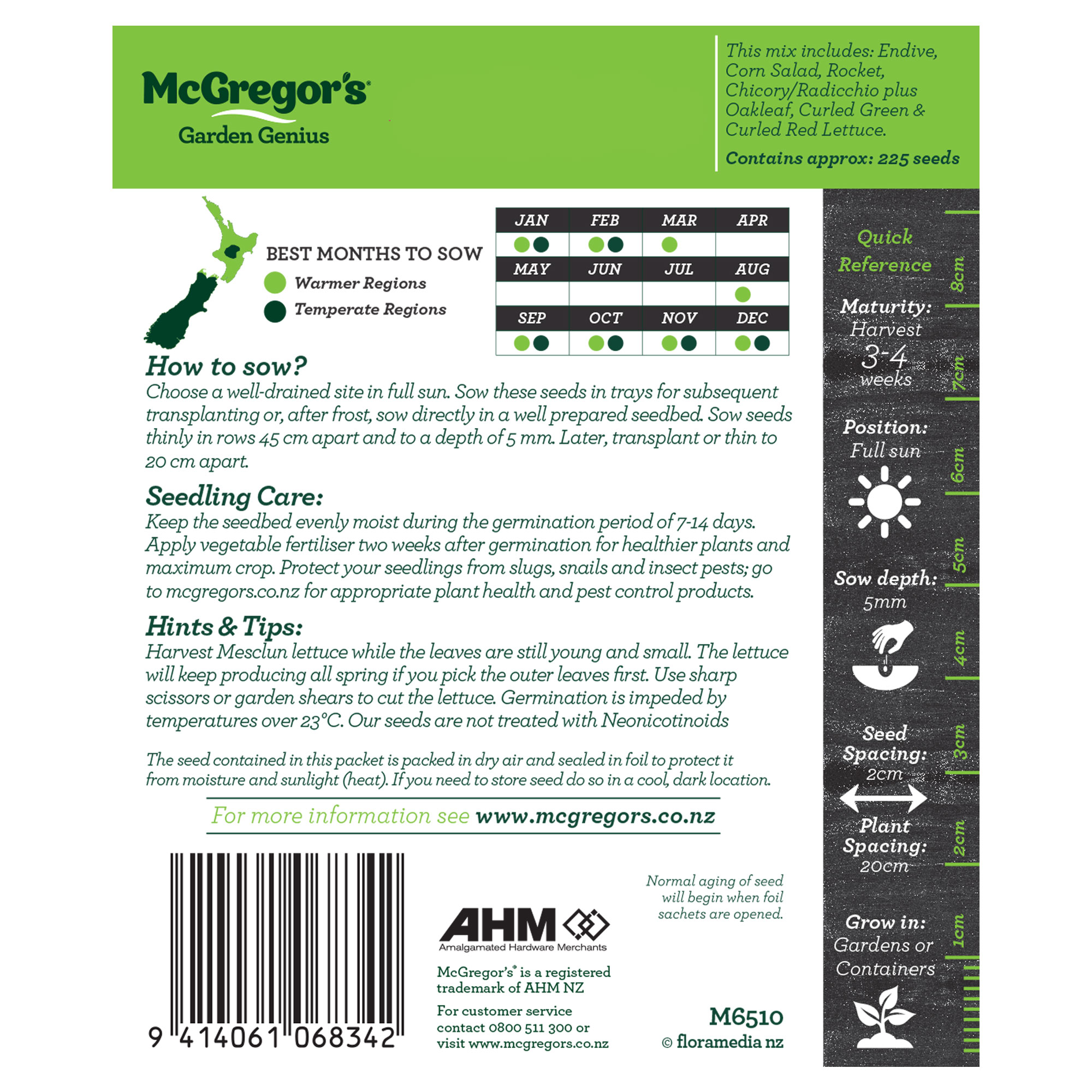 This mix includes: Endive Corn Salad, Rocket Chicory/Radicchio plus Oakleaf, Curled Green & Curled Red Lettuce.Where to buy