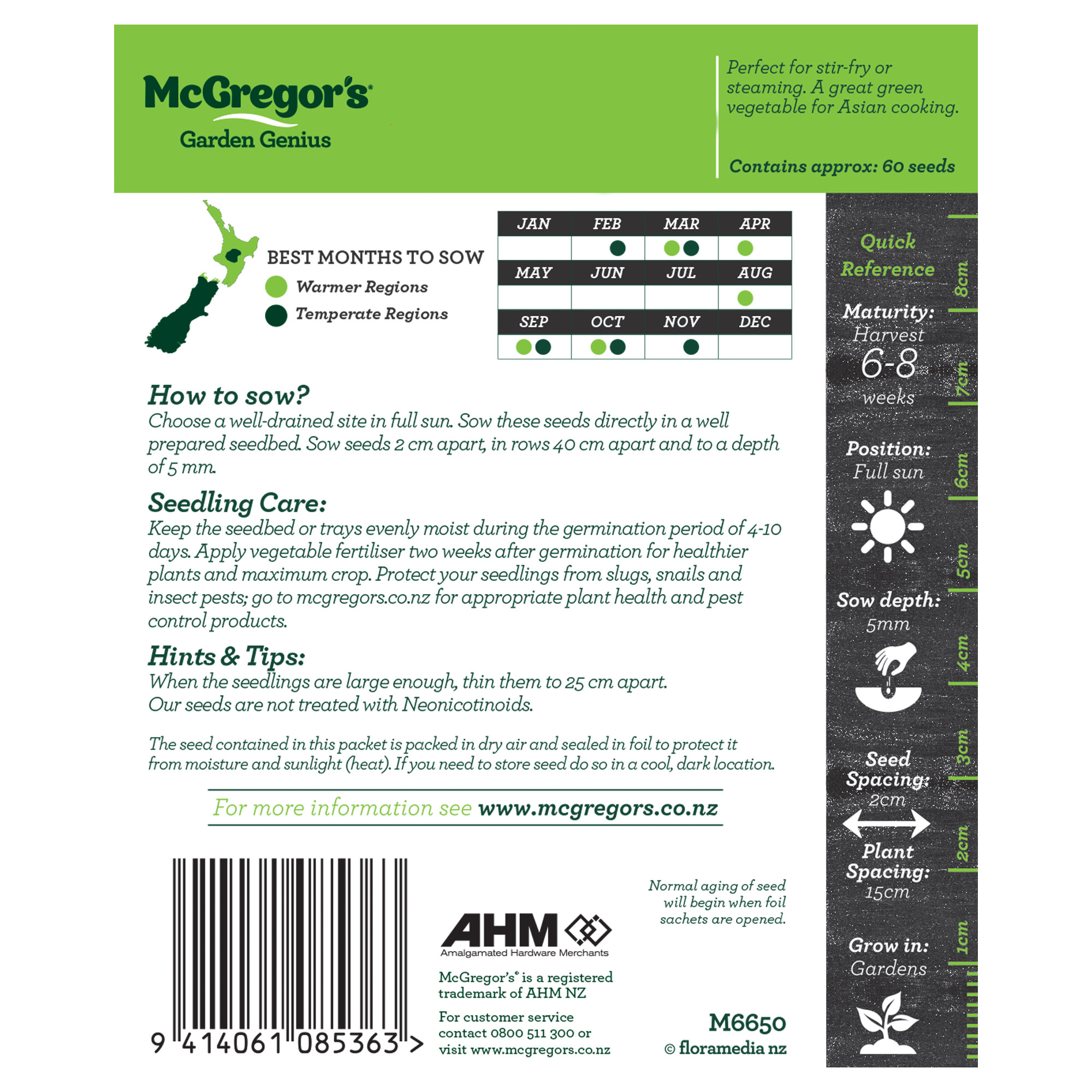 | Best Months To Sow - Warmer Regions | Mar, Apr, Aug, Sept, Oct |