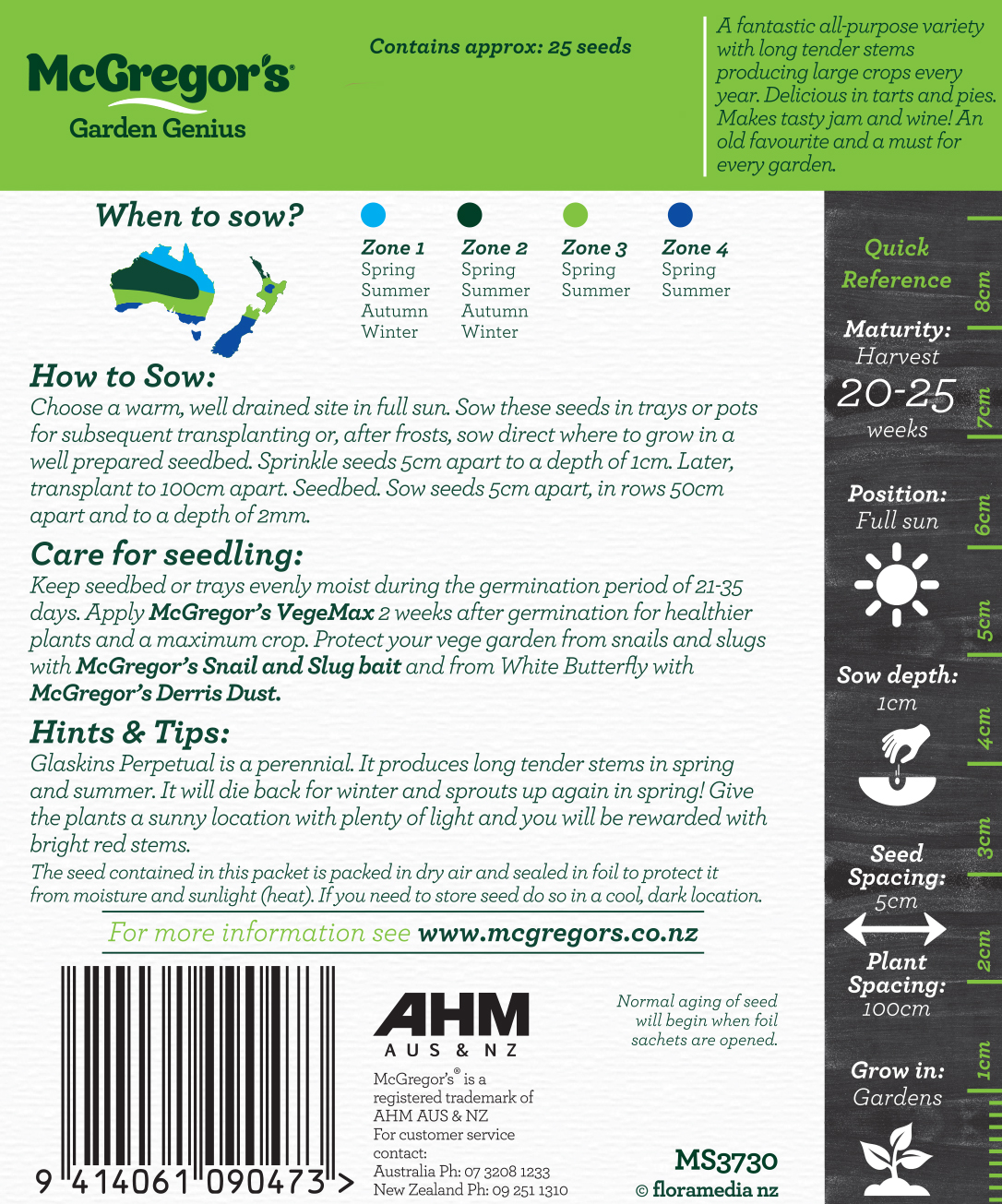 Rhubarb Seed Glaskins Perpetual Specialty Seed