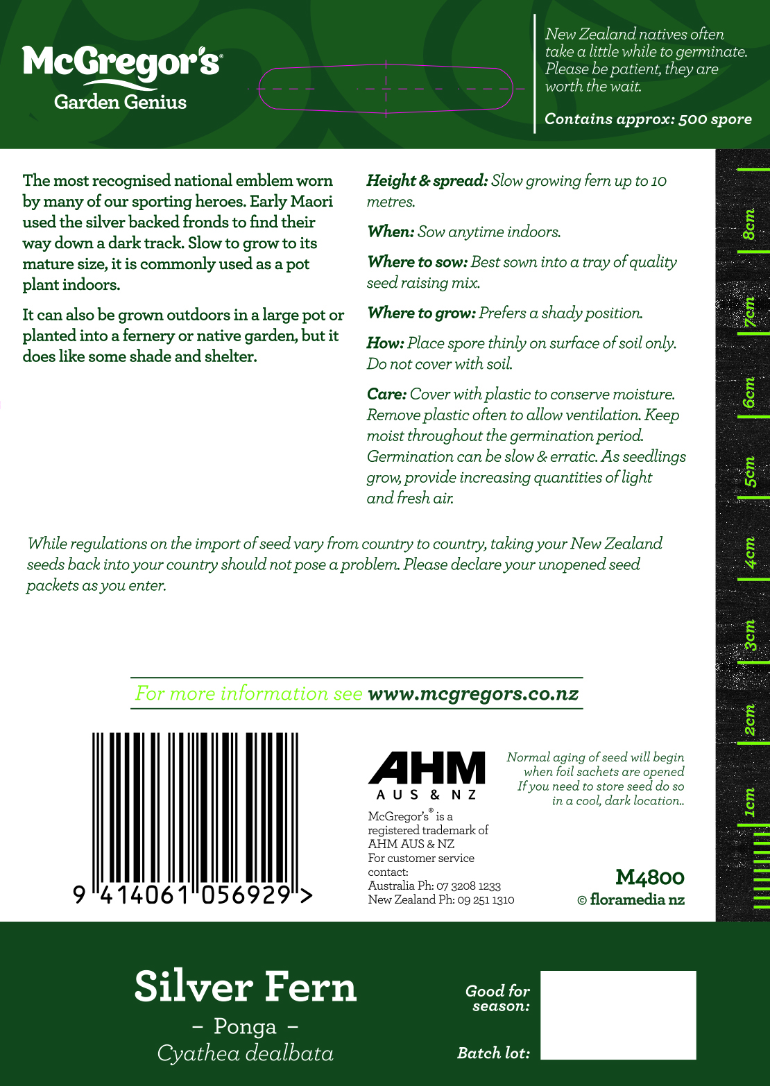 The most recognised national emblem worn by many of our sporting heroes. Early Maori used the silver backed fronds to find their way donw a dark track. Slow to grow as it is commonly used as a pot plant indoors.
