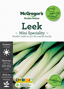 Smaller Leeks to suit the smaller family. Great for the smaller family who don't require large portions. Just as tasty and versatile for stews, soups and with white sauce. Has naturally shorter shanks and performs well under closer spacings to help produce smaller 'mini' leeks.