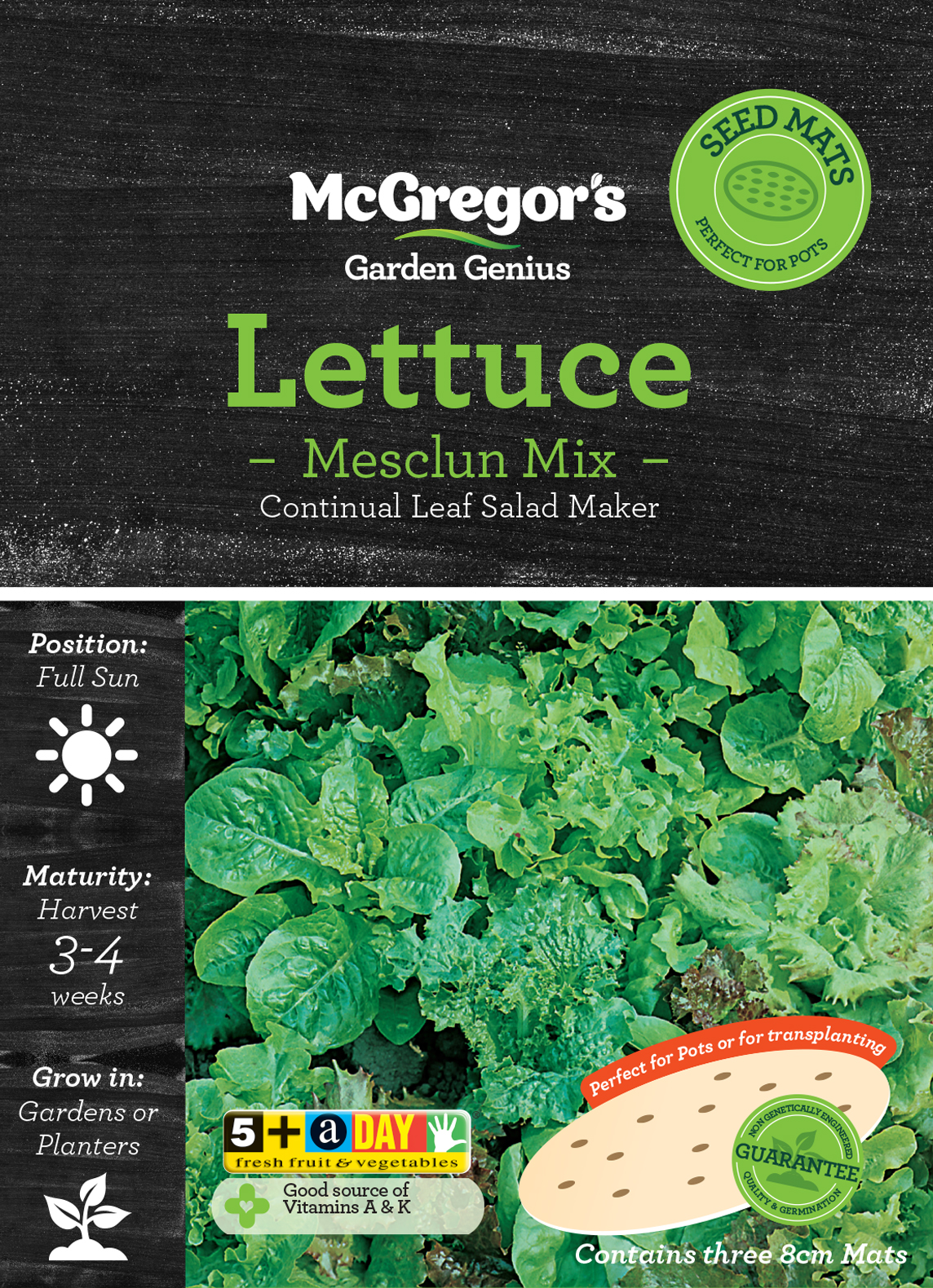 Mesclun Seed Mix Code: M65108 1 Add a fantastic spicy mix to your salads with the great Mesclun Mix. Where to buy Select your region to find your nearest McGregor’s stockist. Find