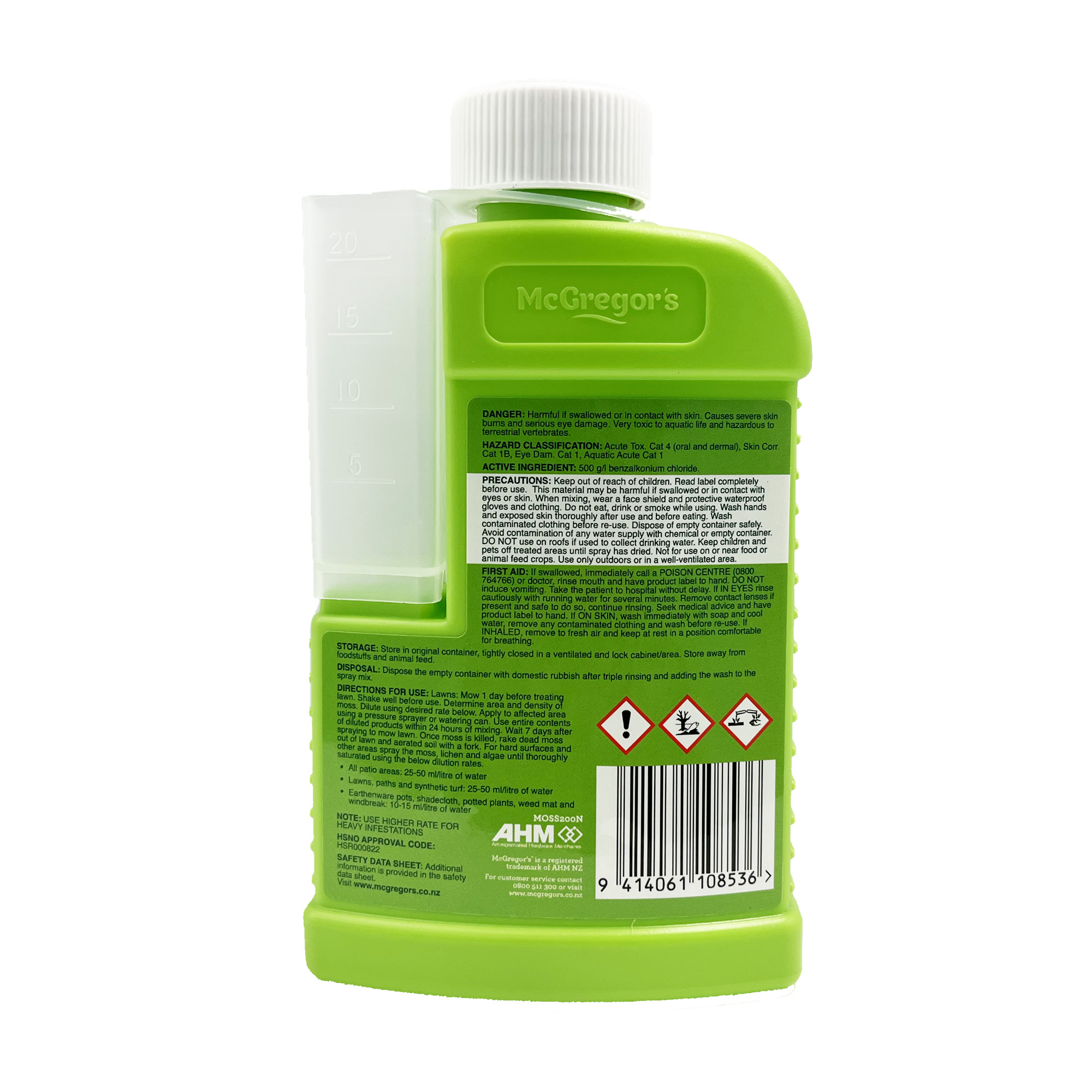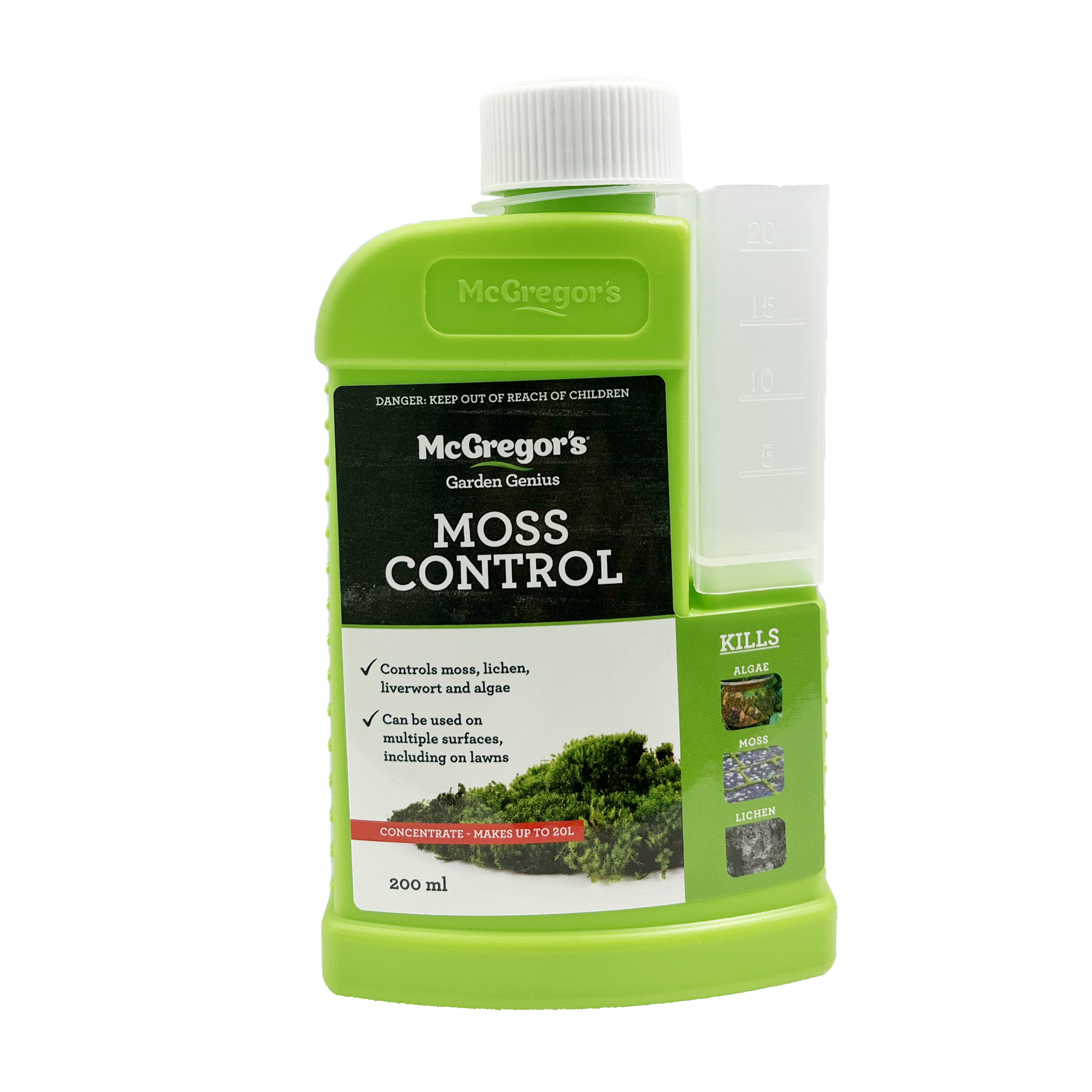 200ml Concentrate makes between 4 and 20 Litres Can be used on wide range of surfaces. Kills Moss, Liverwort, Lichen and Algae. A general Moss control spray. All Patio Areas: 25-50ml/litre of water. Lawns, Paths & Synethetic. Turf: 25-50ml/litre of water. Earthenware Pots, Shadecloth, Potted Plants, Weedmat & WindbreakWhere to buy