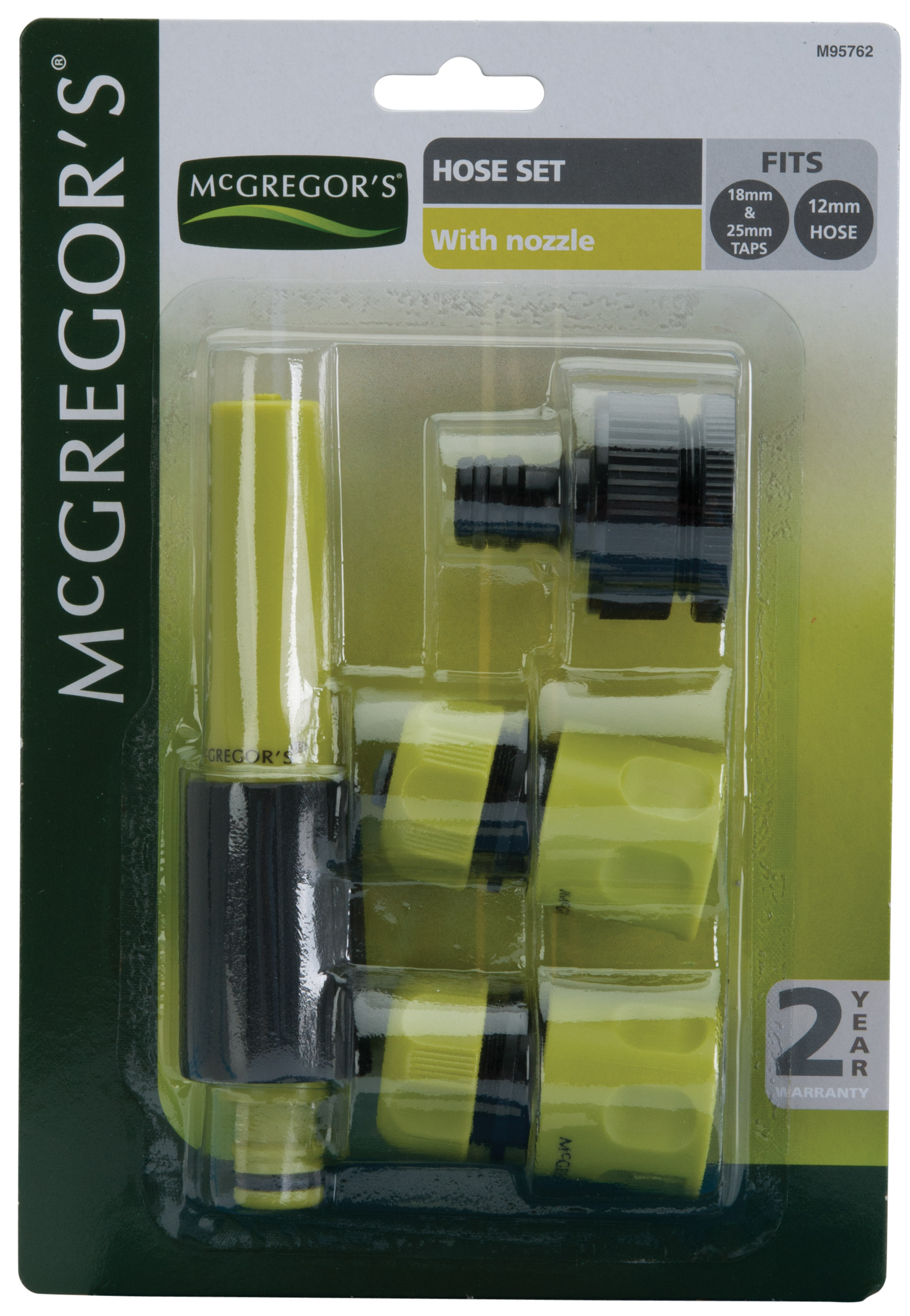 This basic plastic click on hose set contains fittings set to fit 18mm and 25mm taps and for use with 12mm garden hoses. This pack contains: Tap adaptor, hose connector, hose connector with stop valve and adjustable hose nozzle.Where to buy