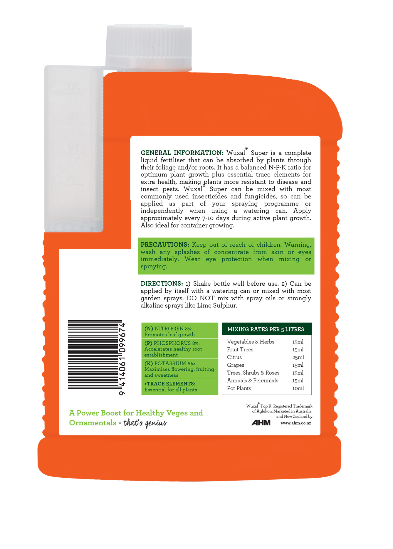 McGregor's FruitMax is a complete liquid fertiliser for flowering, fruiting and root-crop plants, it is absorbed by plants through their foliage and/or roots. The high ratio of potassium maximises the production and development of flowers, fruit and root crops while the trace elements enhance general plant health.