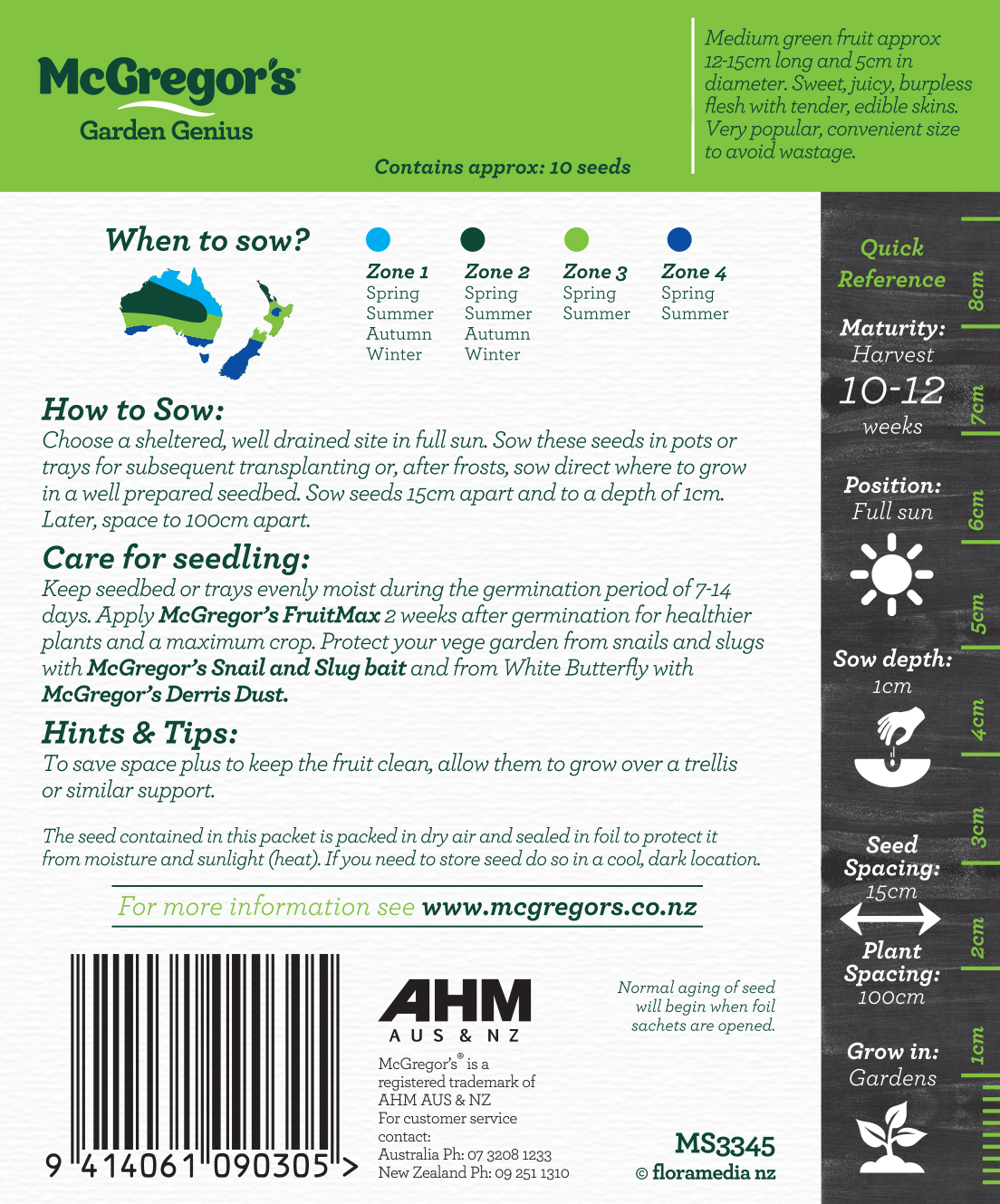 Sweet taste and a very juicy texture. Medium green fruit approx 12-15cm long and 5cm in diameter. Sweet, juicy burpless flesh with tender edible skins. Very popular convenient size to avoid wastage.