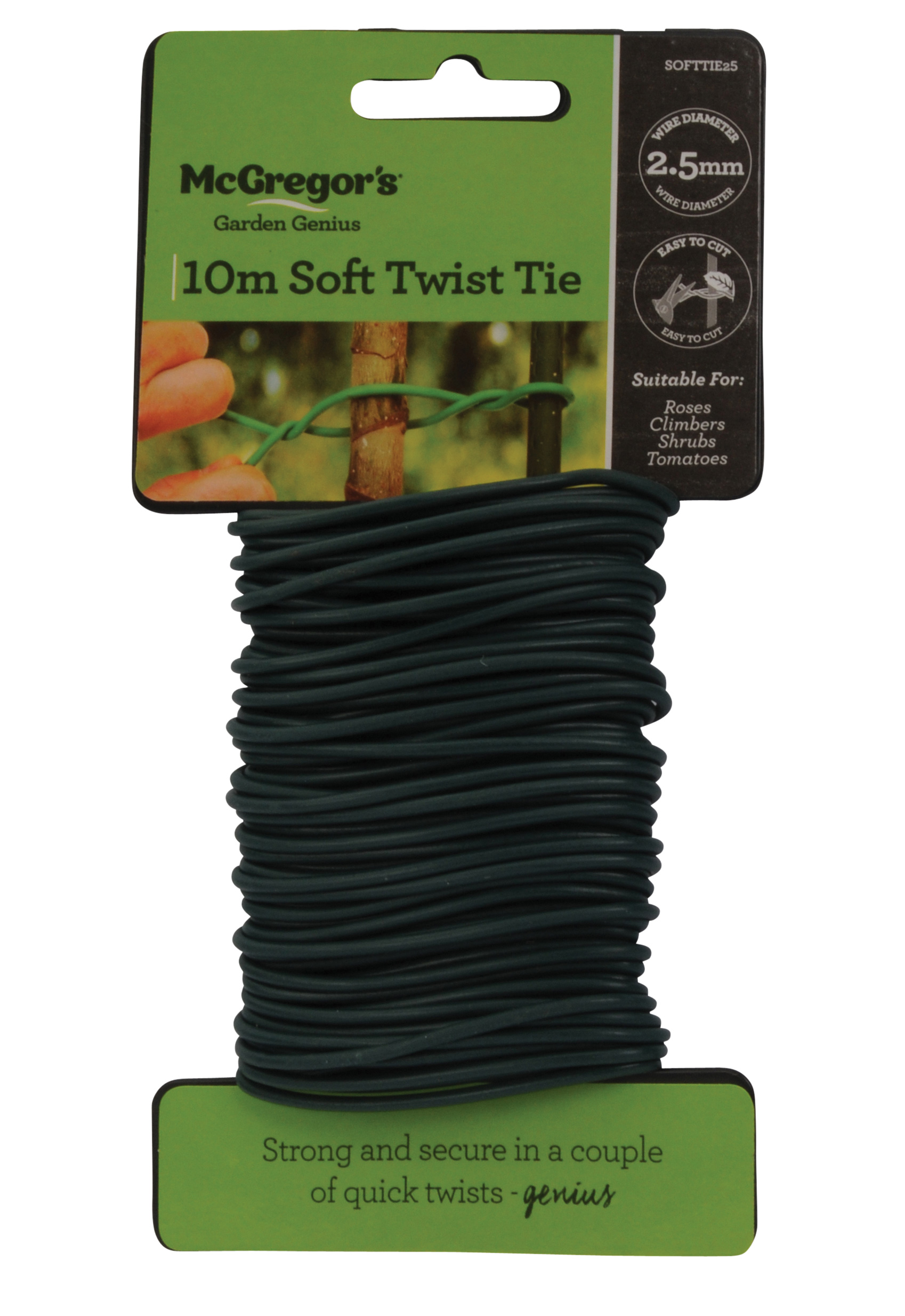 This soft twist garden tie comes in a 10m long pack, the soft tie makes it ideal for plants like roses, tomatoes and cucumbers