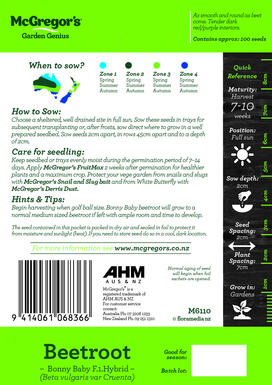 Beetroot Seed Bonny Baby F.1. Hybrid Code: M6110 1 As smooth and round as beet come. Tender dark red/purple interiors. Where to buy Select your region to find your nearest McGregor’s stockist. Find