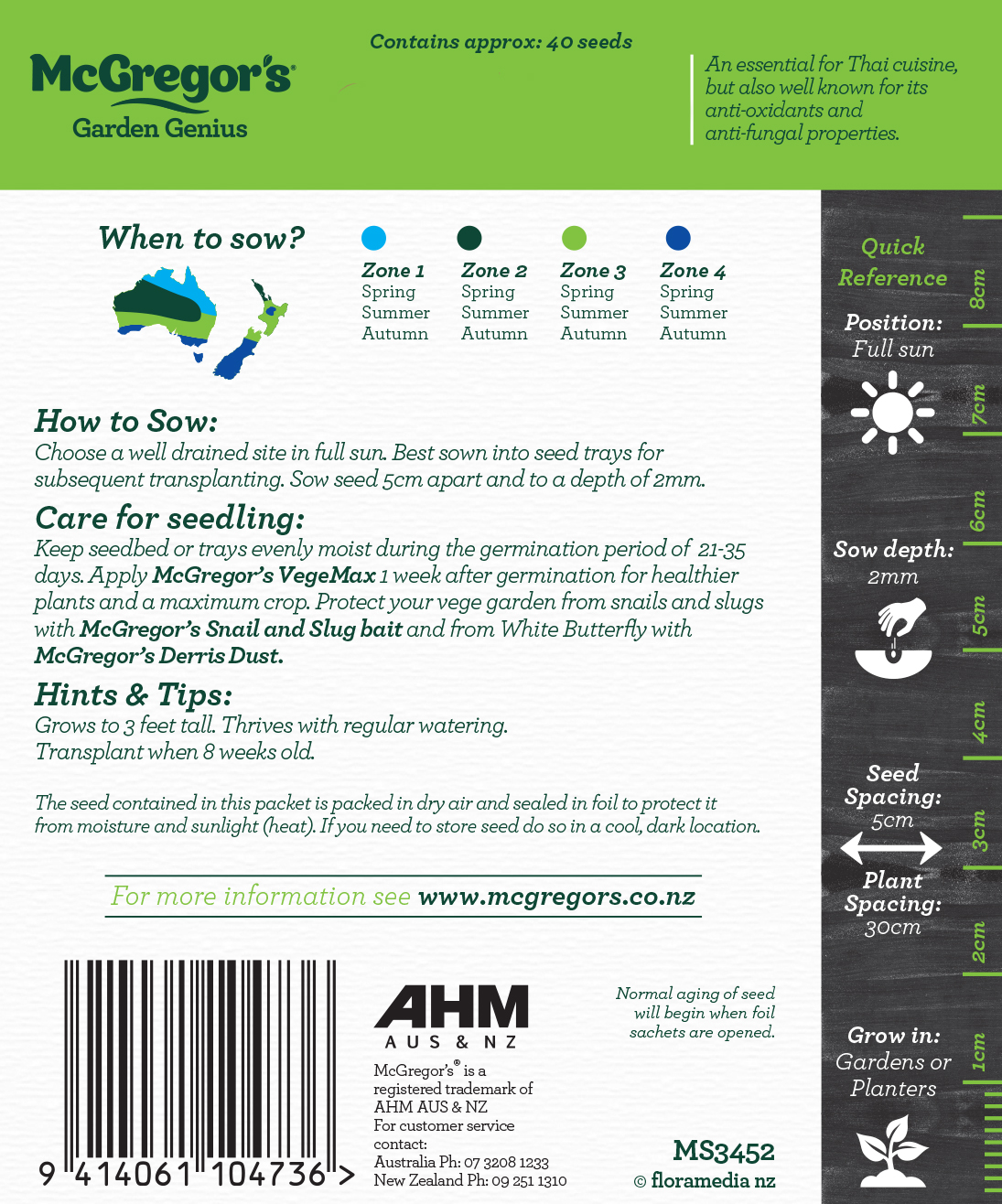 Add a lemony zest to any meal. An essential for thai cuisine but also well-known for its anti-oxidants and anti-fungal properites.