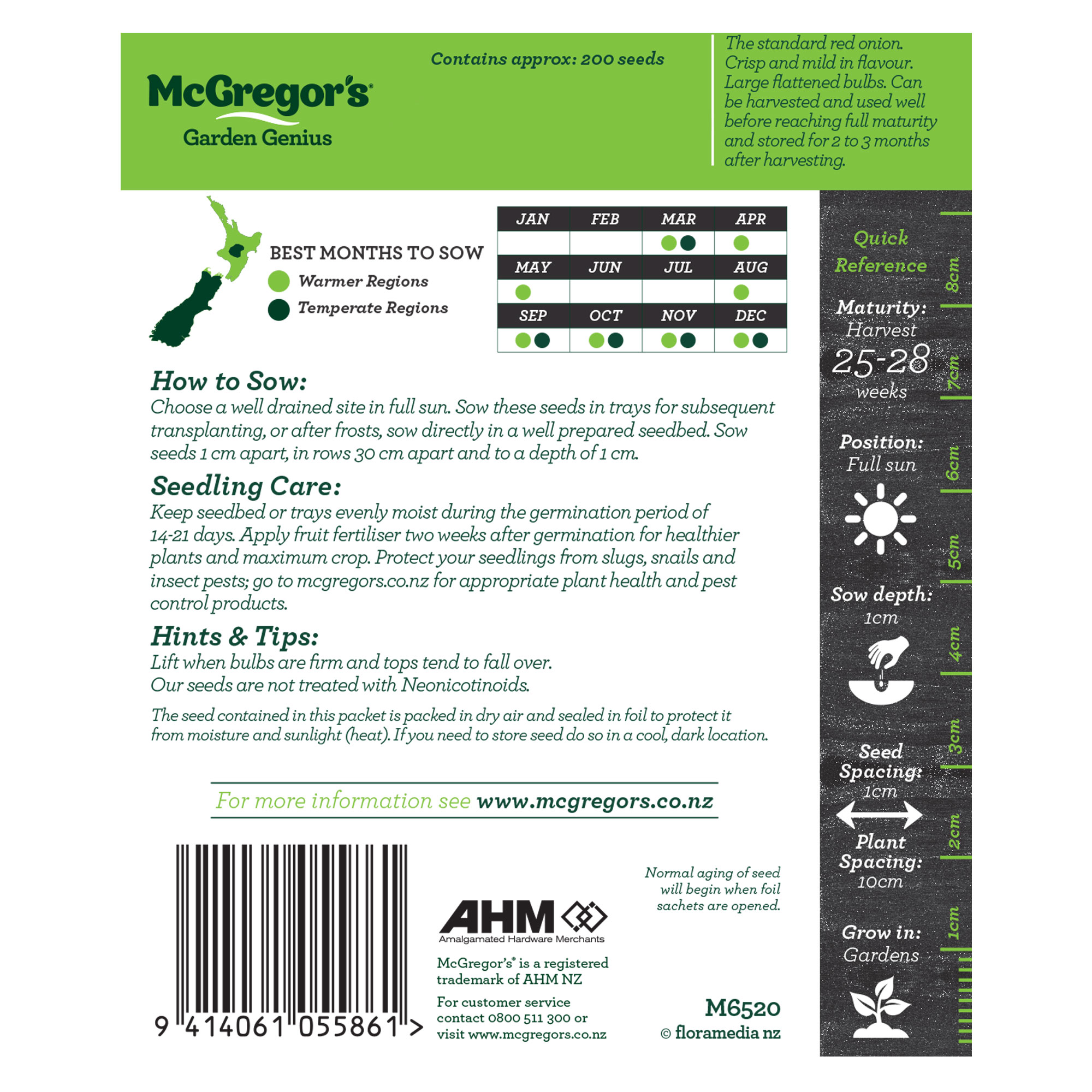 The standard red onion. Crisp and mild in flavour. Large flattened bulbs. Can be harvested and used well before reaching full maturity and stored for 2 to 3 months after harvesting.Where to buy