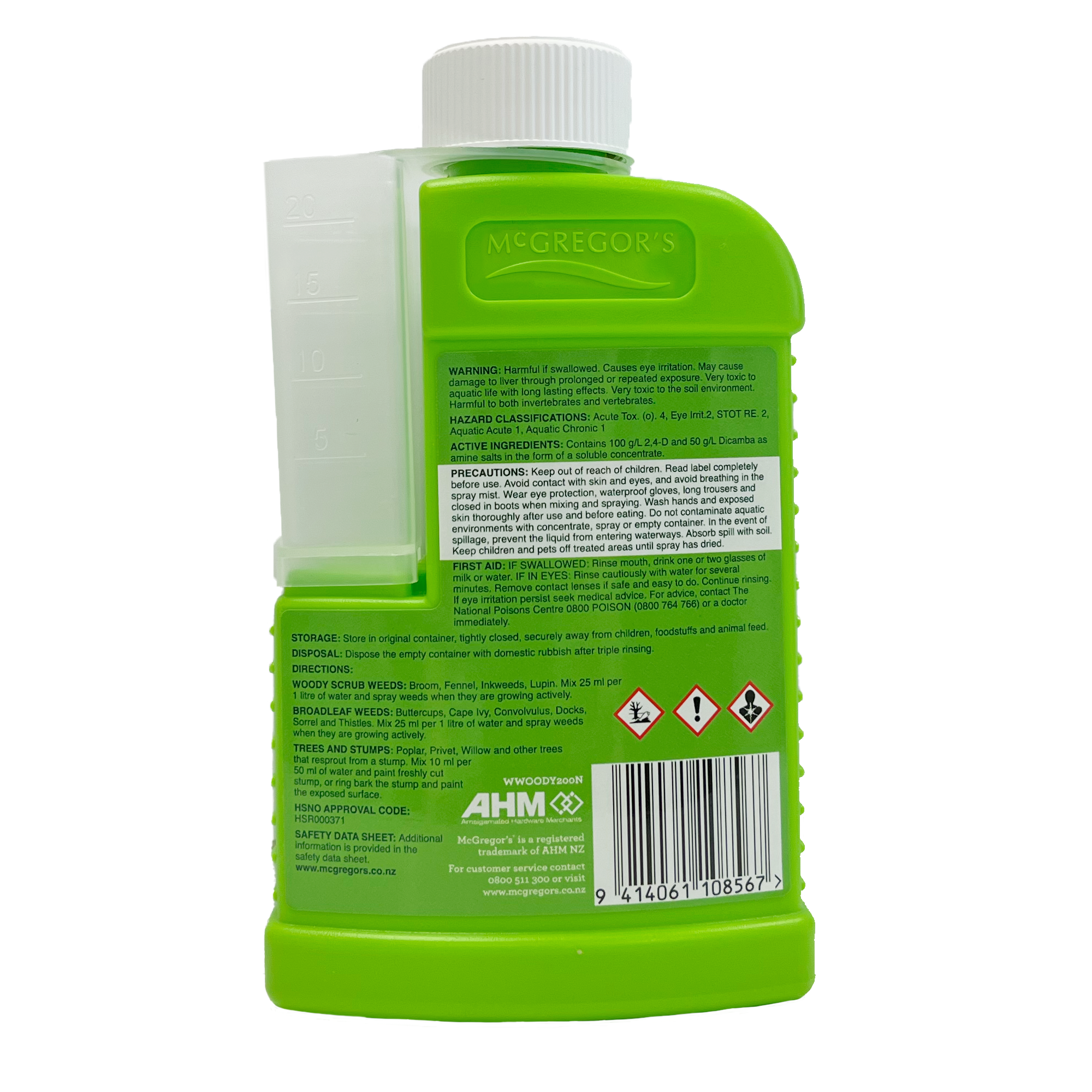 McGregor's Woody and Scrub Weed Control is for use on woody scrub and hard to kill weeds including Brooms Fennel, inkweeds, Lupin Buttercups, Cape Ivy Convolvulus, Docks, Poplar Privet, Sorrel, Thistle Willow and Stumps