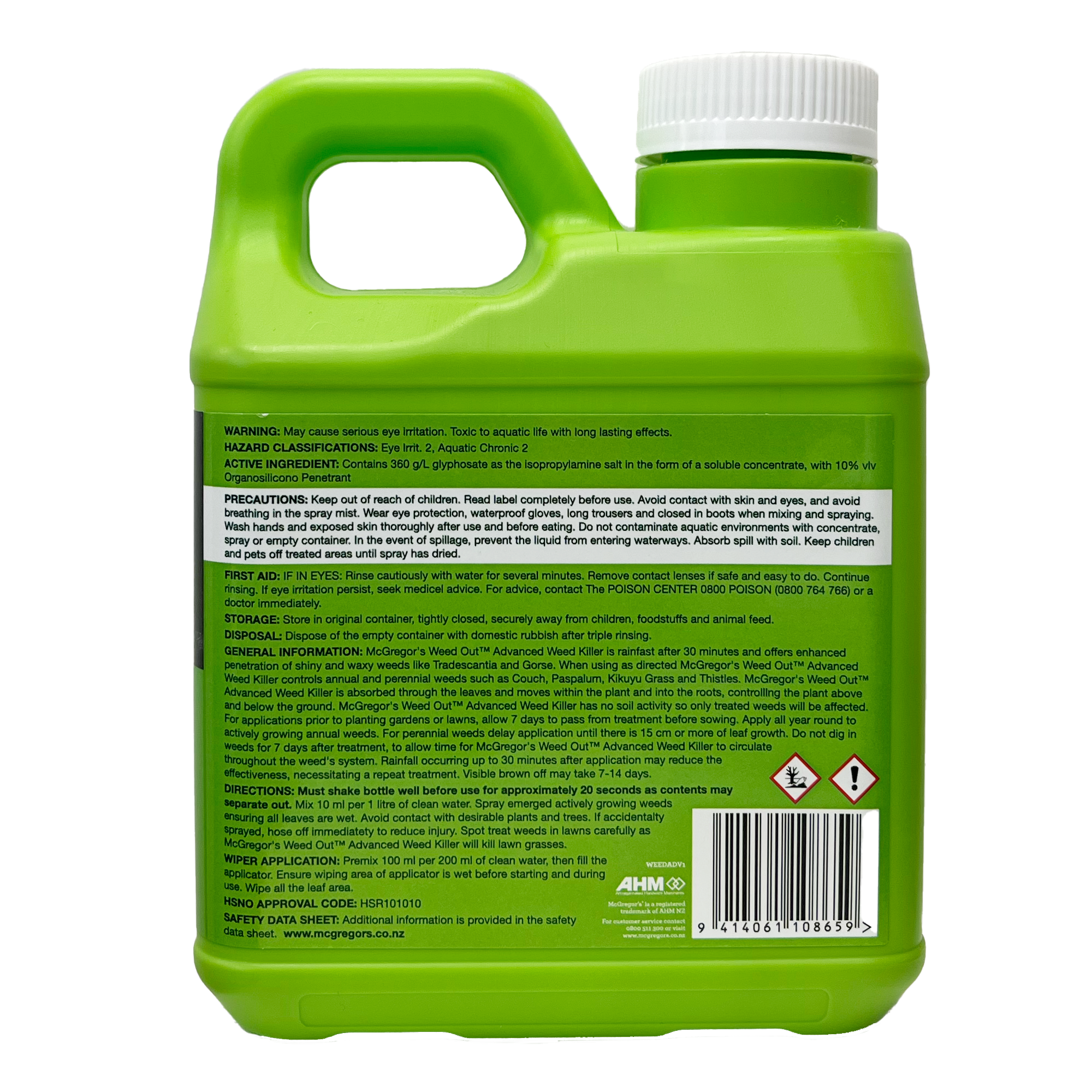 McGregor's Weed Out Advanced Weed Killer is a non-selective weed killer that includes Organosilicone for improved results and is used to control annual and perennial weeds.