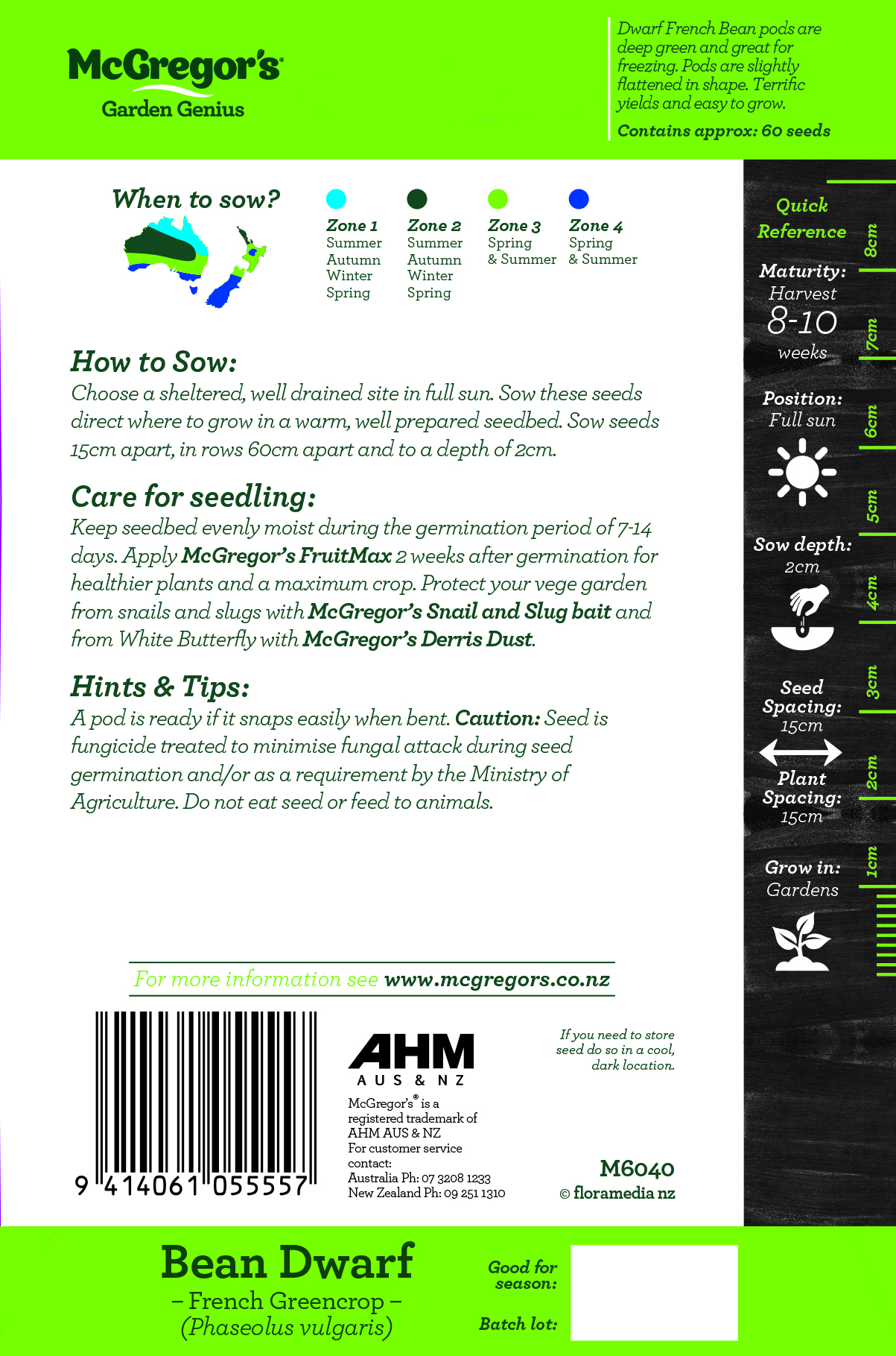 Fantastic crops of tender beans, virtually stringless. Dwarf French Bean pods are deep green and great for freezing. Pods are slightly flattened in shape. Terrific yields and easy to grow.Where to buy