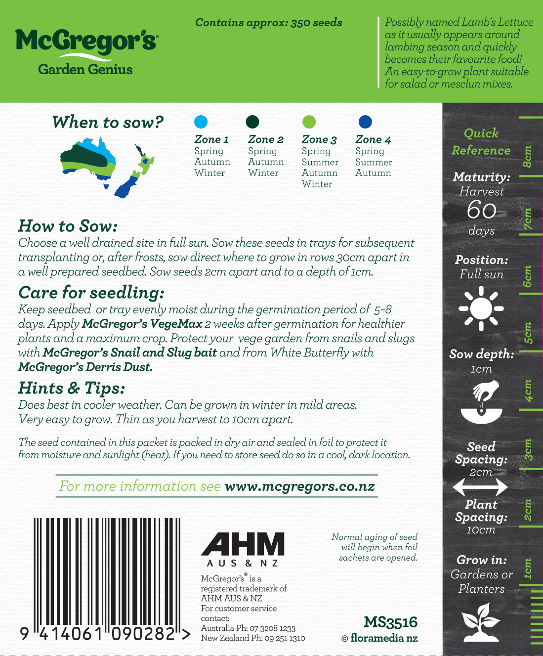 Fantastic for salad and Mesclun mixes. Possibly named Lamb's Lettuce as it usaully appears around lambing season and quickly becomes their favourite food! An easy-to-grow plant suitable for salad or mesclun mixes