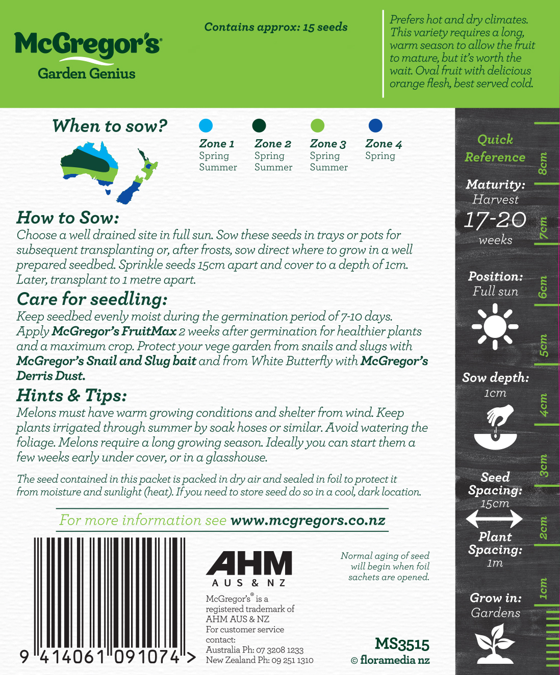 A tasty and refreshing summer fruit. Prefers hot and dry climates. This variety requires a long, warm season to allow the fruit to mature but it's worth the wait. Oval fruit with delicious organge flesh, best served cold.