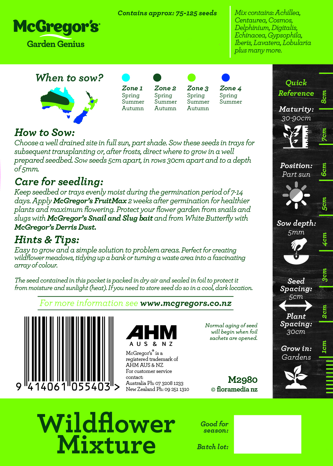 Mix contains: Achillea Centaurea, Cosmos, Deplhinium Digitalis, Echinacea Gyposphila, Iberis, Lavatera Lobularia plus many more