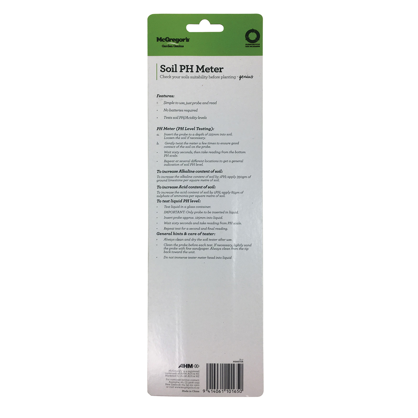 This tool is an easy to use way to measure the soil PH acidity levels in all garden areas.
