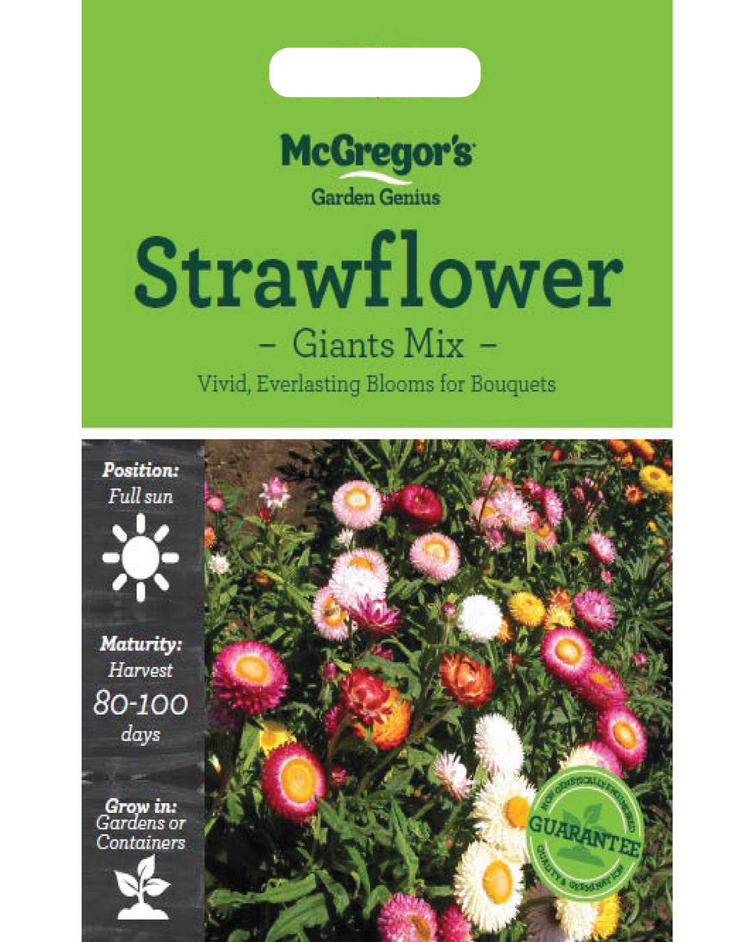 Vivid, everlasting blooms for bouquets. A timeless mix of double-flowered, long-lasting blooms in a full spectrum of colors. Pick when flowers are half open. Strawflowers add texture and versatility, perfect fresh or dried, and are a favourite of pollinators.Where to buy