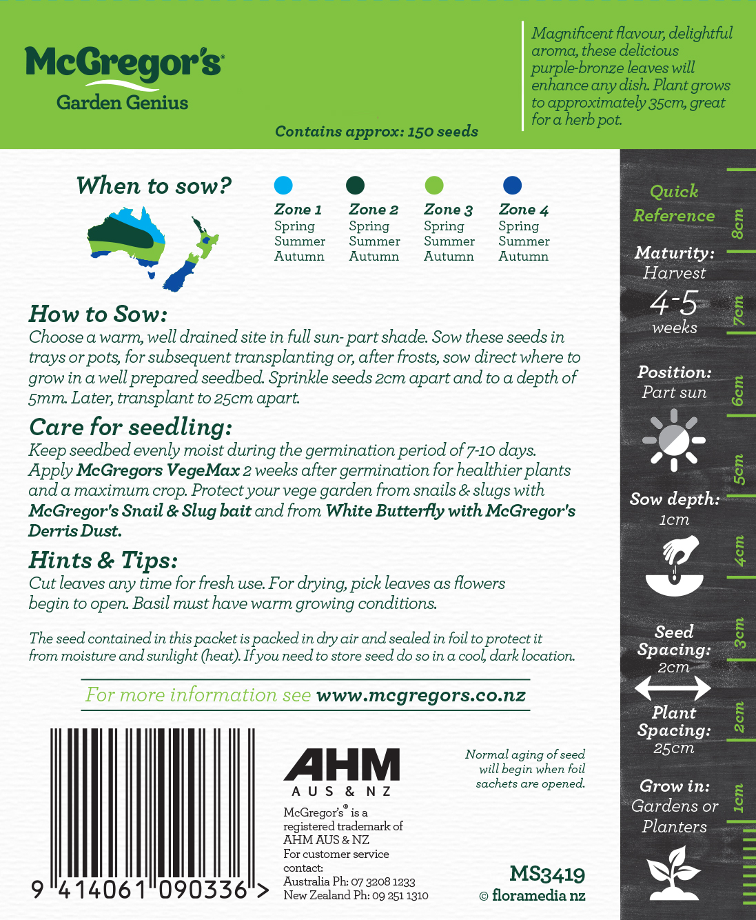 Magnificent flavour delightful aroma, these delicious purple-bronze leaves will enhance any dissh. Plant grows to apporximately 35cm great for a herb pot.